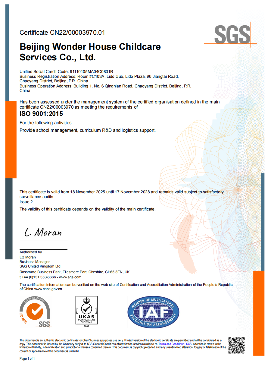 此次续证成功,不仅标志着伊童之家在持续精进高品质托育服务的道路上迈出了坚实一步,,更是伊顿“托育一体化”高品质发展的重要体现。 它标志着伊顿从托育(0-3岁)到幼儿园(3-6岁)阶段,始终坚持并实践着同一套符合国际标准的卓越质量管理体系与服务理念。